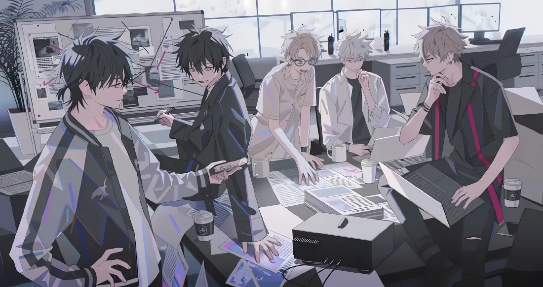 临时办公办公分区办公分区壁纸卡通场景工作壁纸打工人